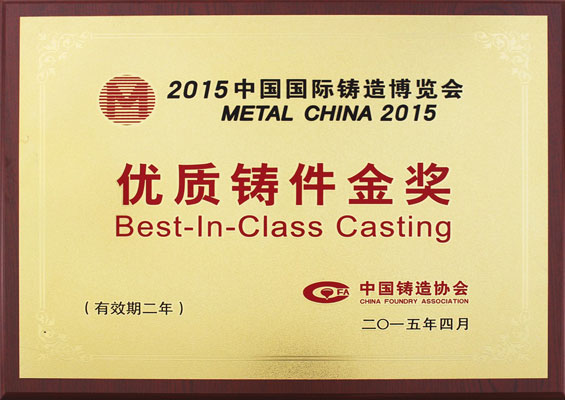 第十三屆中國(guó)國(guó)際鑄造博覽會(huì)于2015年3月31日在上海國(guó)家會(huì)展中心隆重召開(kāi),河北安吉宏業(yè)集團(tuán)公司下屬子公司泊頭市宏昌機(jī)械有限責(zé)任公司參展鑄件“帶法蘭三通連接管”以其復(fù)雜的工藝結(jié)構(gòu),光潔的鑄件外觀一舉榮獲優(yōu)質(zhì)鑄件金獎(jiǎng)